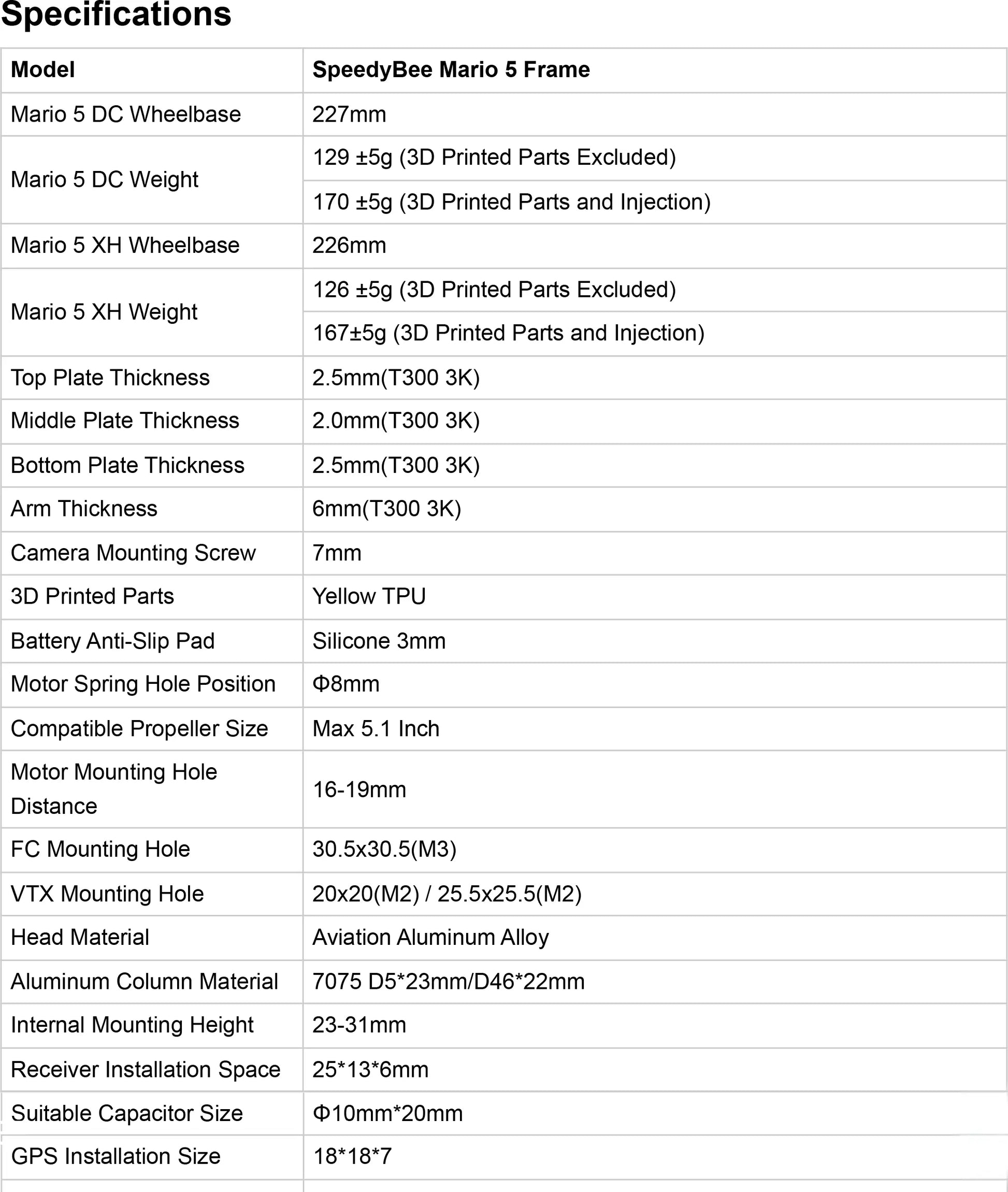 • 1x SpeedyBee Mario 5 Frame Kit - (different options available)